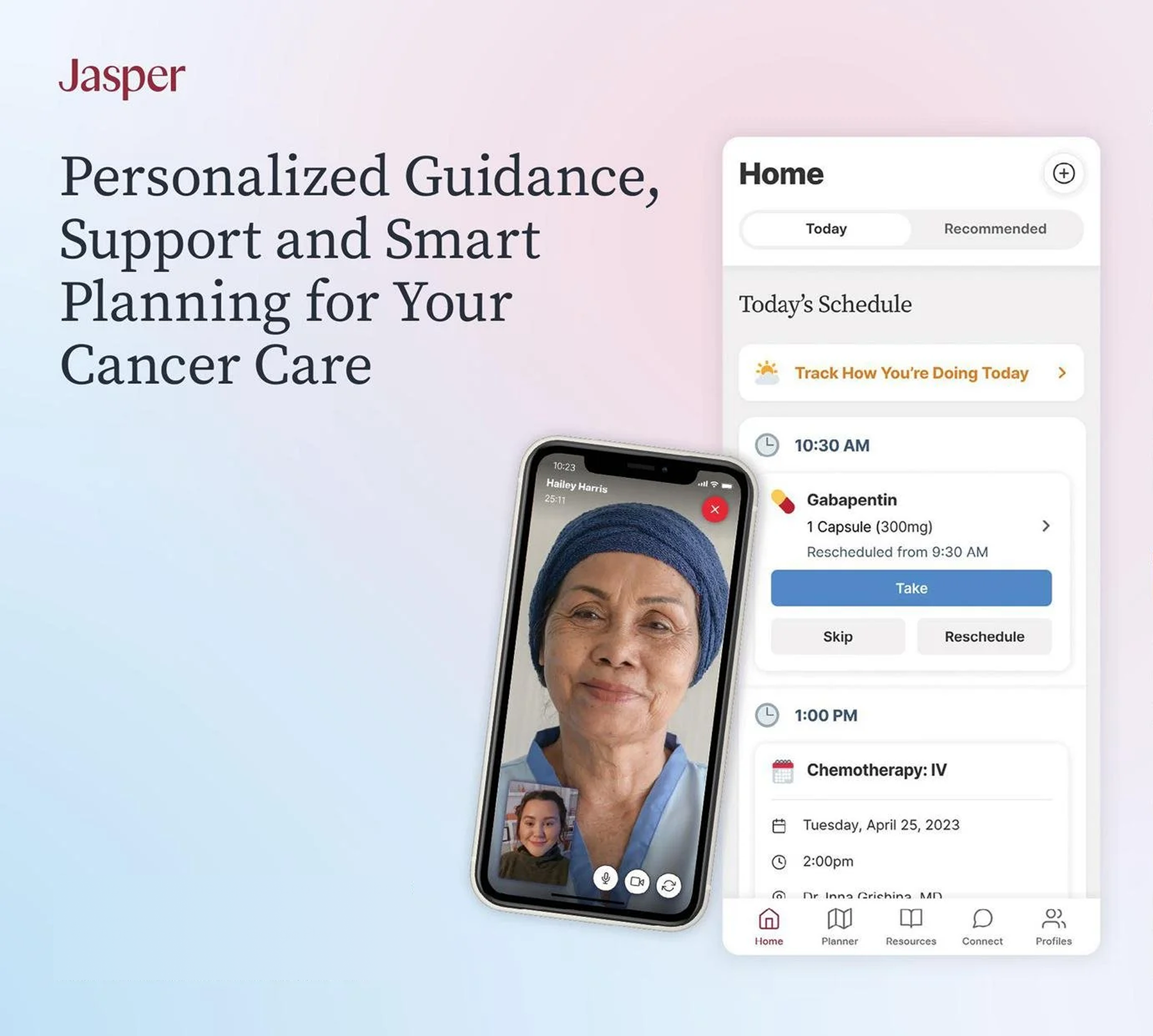 Jasper is a digital platform that helps people navigate life during cancer, combining guidance, planning tools, and connection into a single experience. It supports patients through treatment while keeping them connected to the people and resources around them.