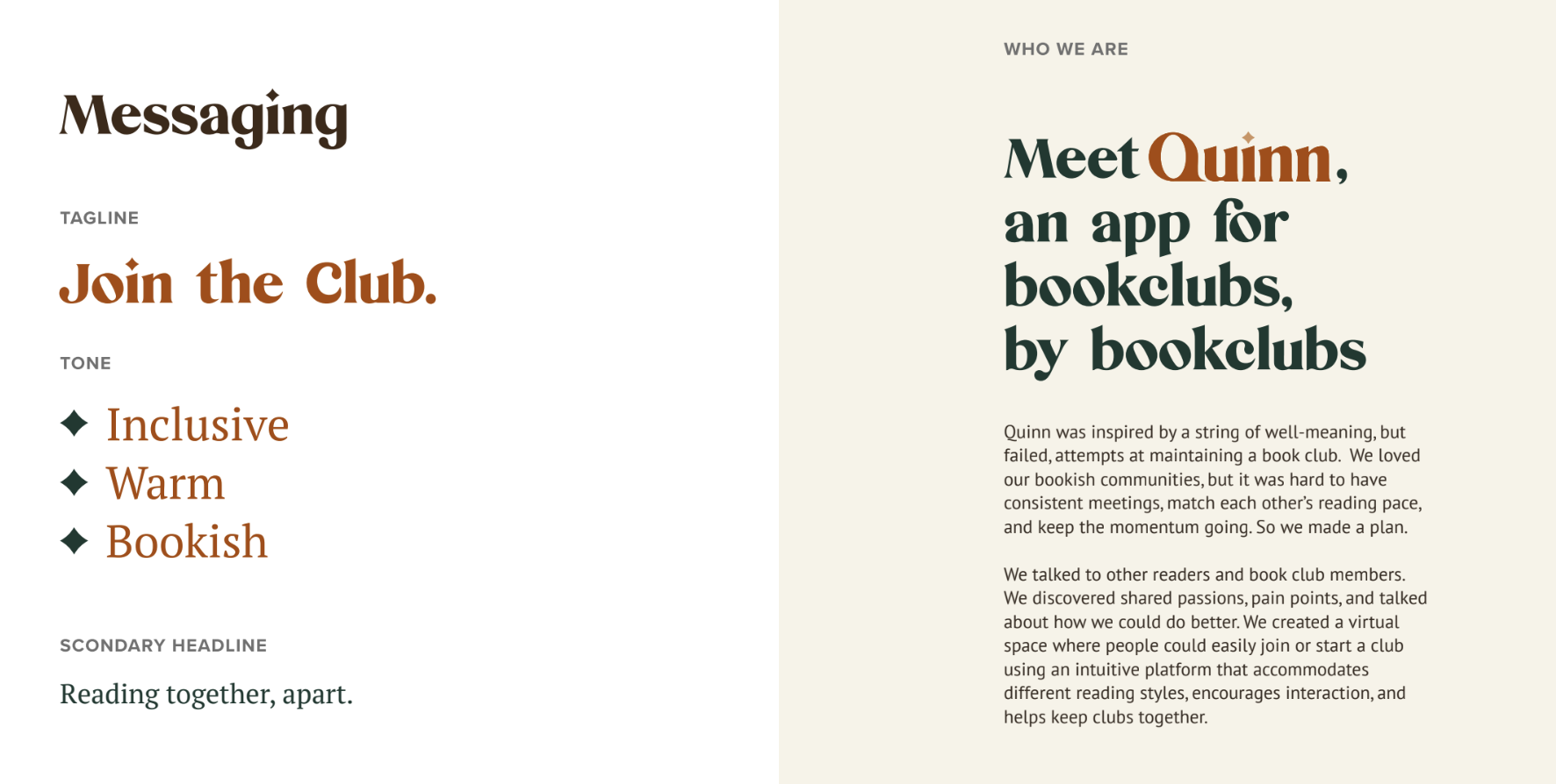 Quinn’s identity was developed alongside the product, led by the co-founder responsible for brand and marketing. While outside my direct scope, it played a key role in shaping how the product feels and communicates.