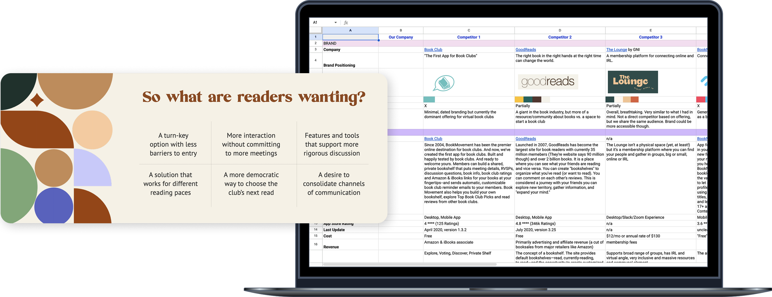 We grounded the product in user insight, surveying 70+ readers and conducting a competitive analysis of book tracking platforms. These findings shaped the core product, focusing on flexible participation, spoiler-free discussion, and more structured ways to engage and make decisions.